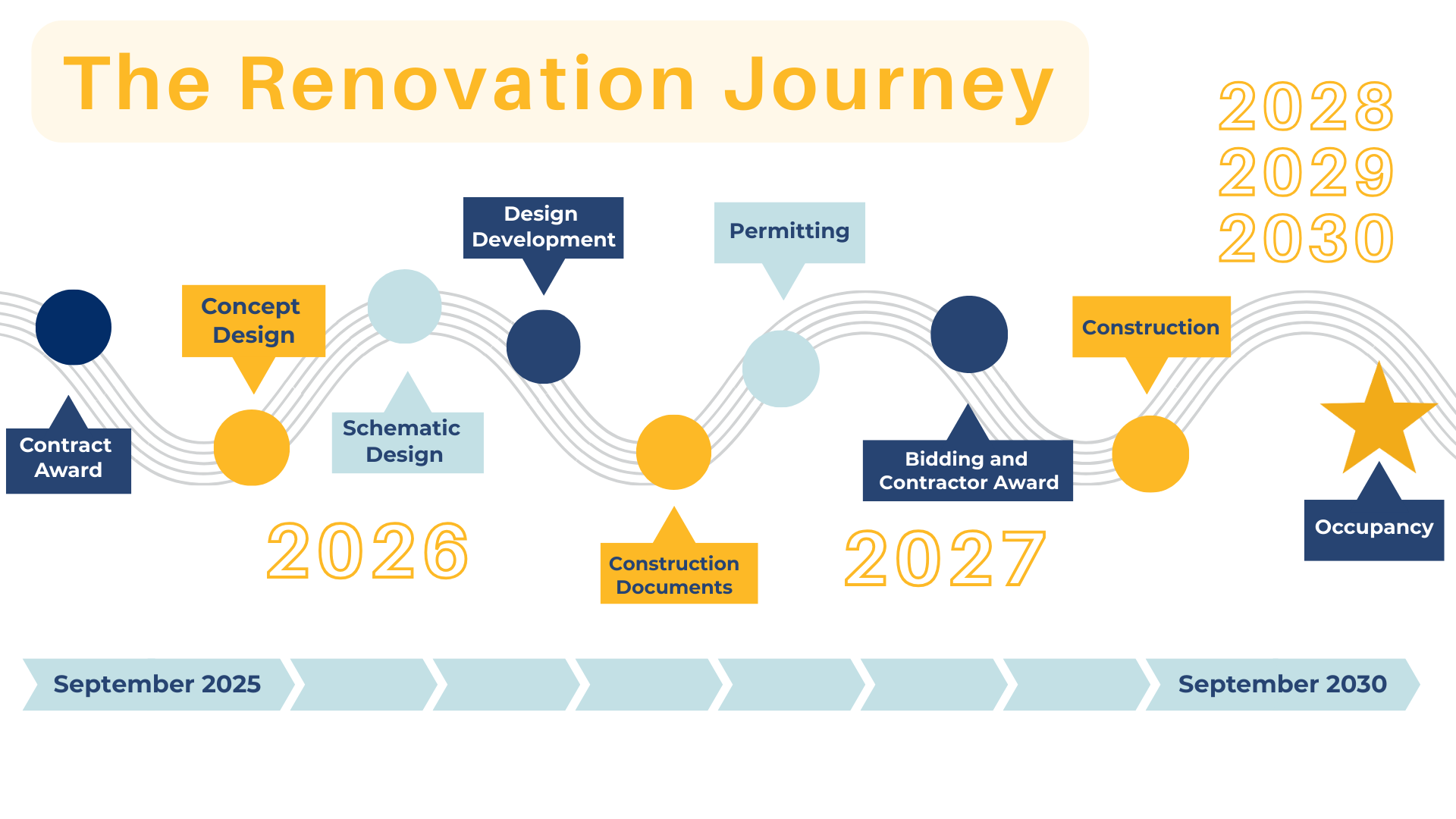 This timeline is subject to change due to permitting and approvals, material availability, weather, and other unforeseen conditions.